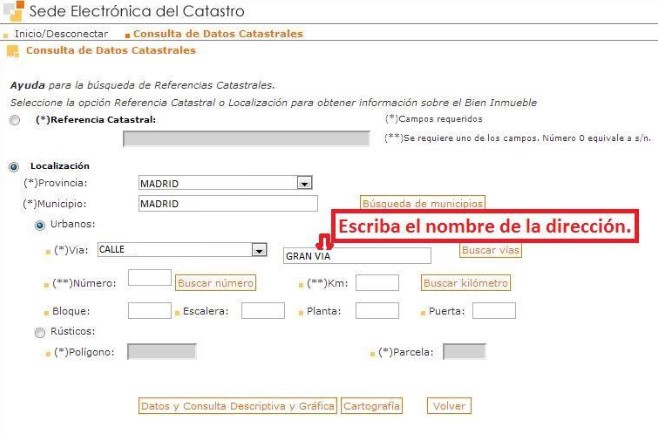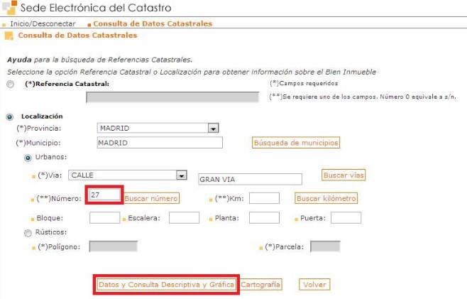 Séptimo. Finalmente, introduzca el número de su edificio y haga clic en el botón «Datos y Consulta Descriptiva y Gráfica» (para conocer la antigüedad no es necesario introducir ningún dato más).